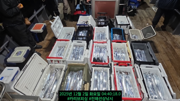 ![]() 12월01일(월) 카리브피싱 출조후기 홍도 남서쪽 영해한계선 수심89m~ 동으로 흐르면서 ~93m 수온18.4도 히팅수심 평균70~75m 시작부터 연장4시30분 마칠때까지 2.5지에서 3지 4지 5지 용가리 꾸준한 히팅~~♡♡♡ 개인조과차이 있습니다.. 기상악화로 화수목 휴항하고 금토일 쭈~욱 달립니다~~ 여러분의 수심공유는 파이팅을 위한 필수선택 오늘 출조하신 조우님들 고생많으셨습니다 ???? #카리브피싱 #진해선상낚시 #루어낚시 #갈치 #한치 #먼바다갈치 #준내만갈치 #루어낚시 #먼바다갈치 #텐야텐빈 #갈치조황 #갈치출조 #오징어 #먼바다낚시 #만쿨 #대치 #용가리 #3지 #4지 #5지 #6지 #쿨러조황 #쿨러도장 *** 진해 카리브피싱 예약 안내 *** 예약문의 : 010-5912-0111 오시는길 : 경남 창원시 진해구 제덕로179번길 33 홈페이지 : https://caribe.sunsang24.com/